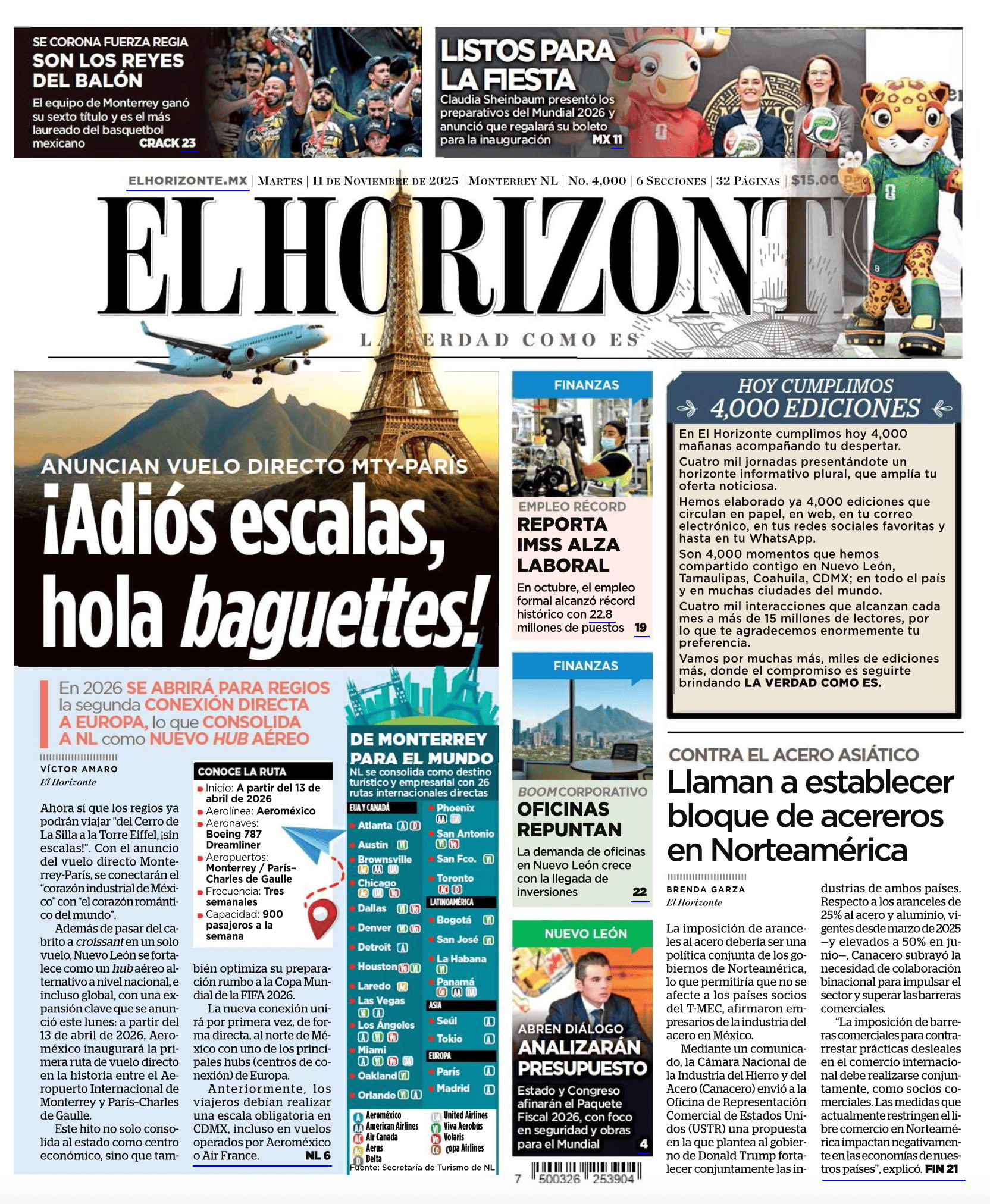 El Horizonte llegó a su edición número 4,000 reafirmando su posición como uno de los periódicos más influyentes del noreste del país y con oferta noticiosa seria, amplia, fresca y plural.